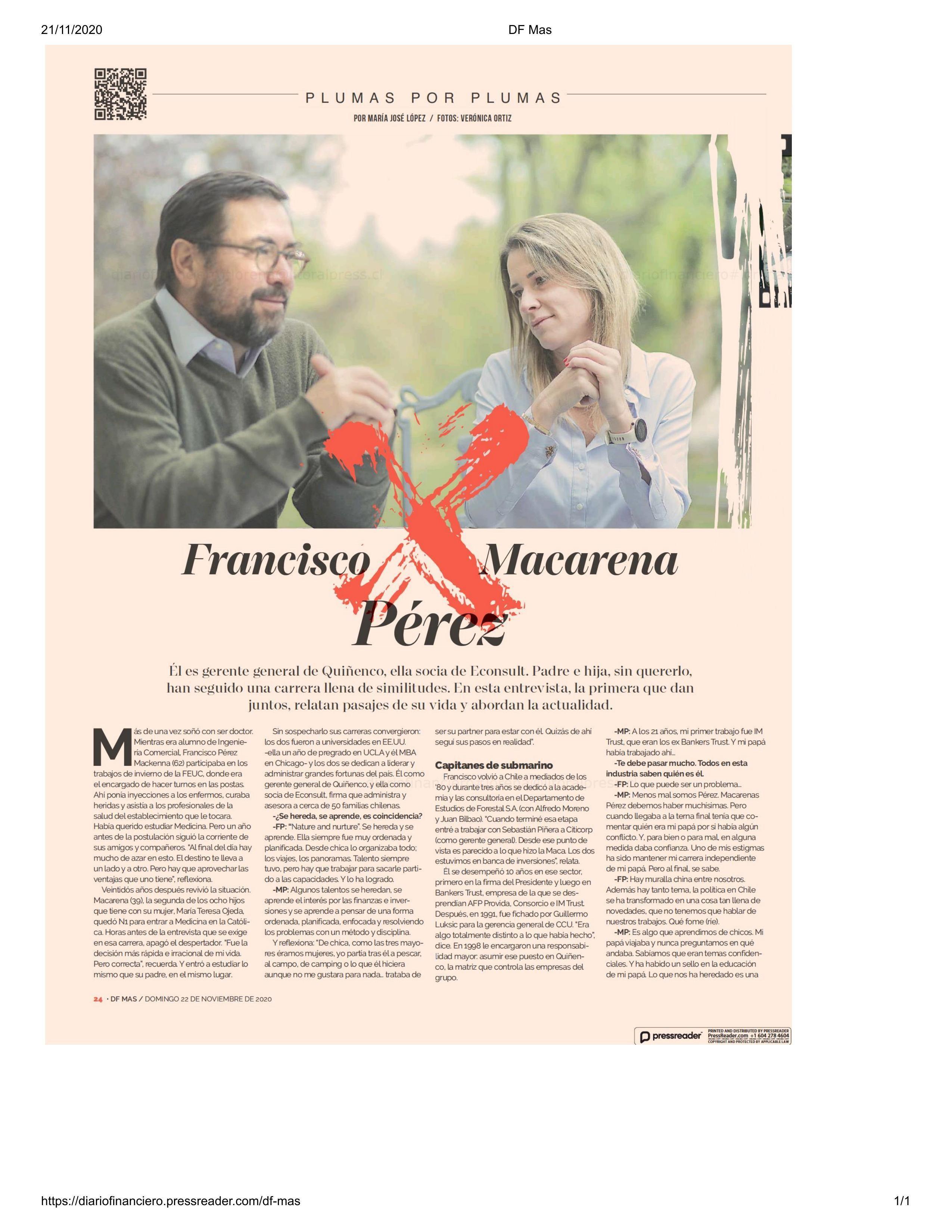 Francisco Y Macarena Perez Padre E Hija A La Cabeza De Inversiones De Las Grandes Empresas De Chile Diario Financiero from www.df.cl Maybe you would like to learn more about one of these? Check spelling or type a new query. We did not find results for: